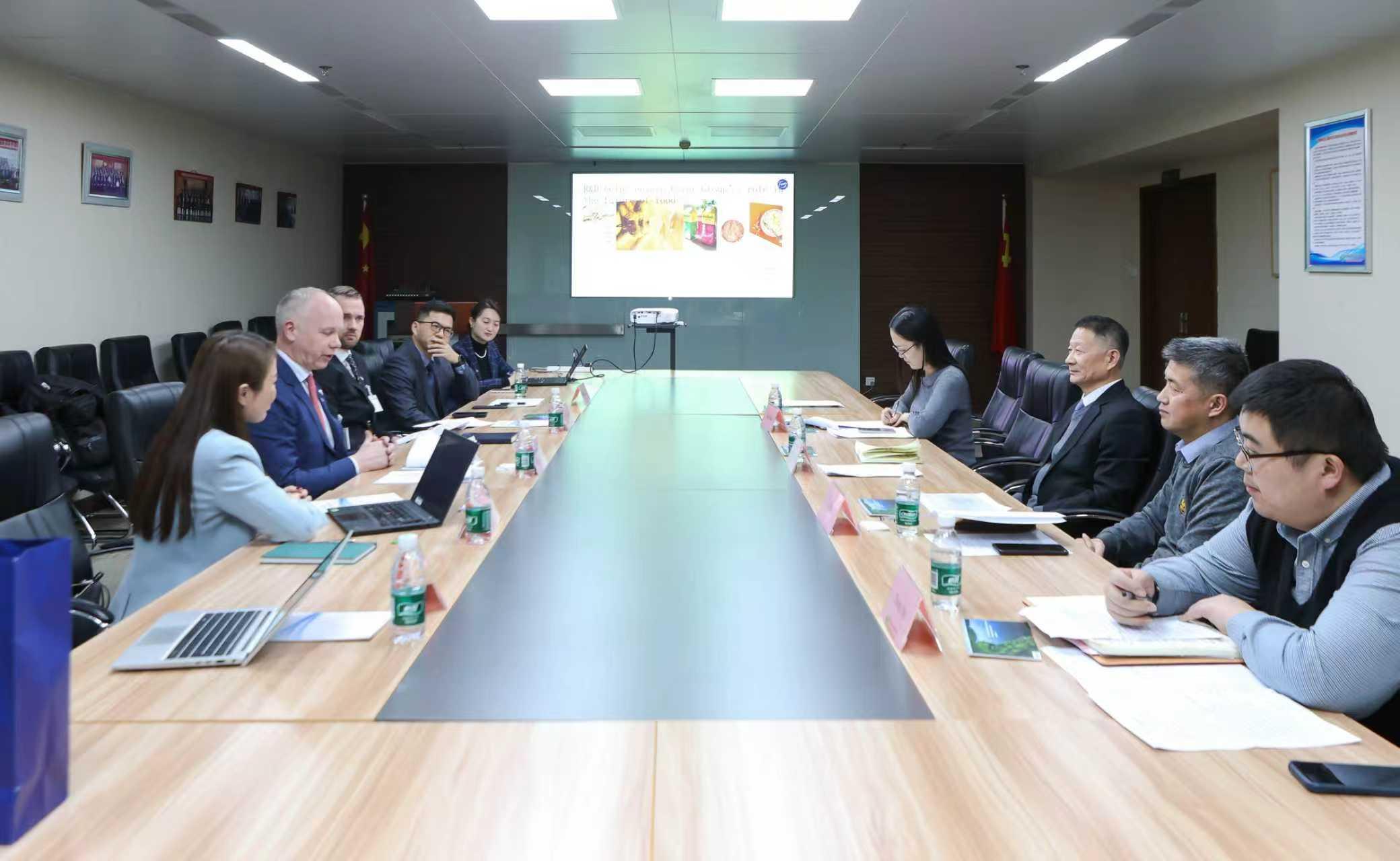 On January 26, president Cao Derong met with business representatives of the Prime Minister’s delegation to China, including Mr. Christoph Vitzthum, president and CEO of Fazer Group, and Mr. Ville Pekkola, general manager of Valio China. President Cao briefed the Finnish representatives on recent developments in China’s trade in food and agricultural products. The two sides engaged in in-depth discussions on the production and trade of products such as dairy products and oats. Representative from the Consulate General of Finland in Shanghai also attended the meeting.